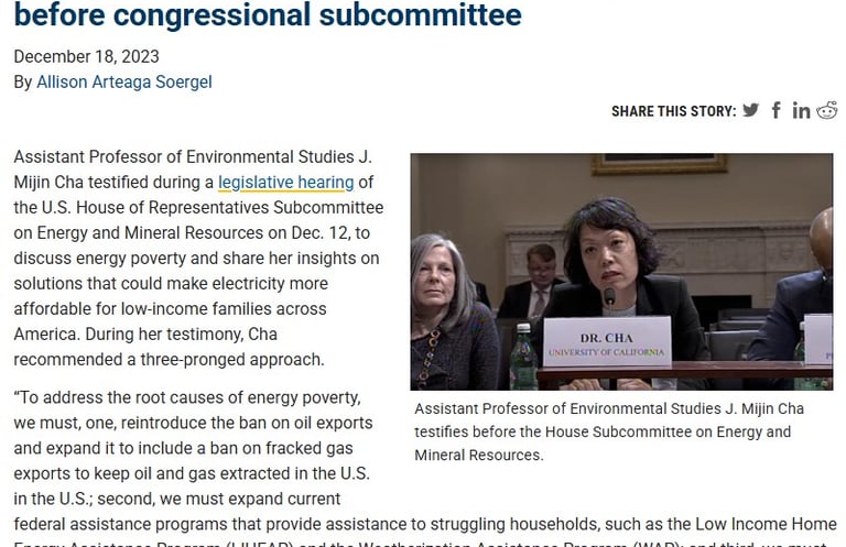 J Mijin Cha testifies on solutions to energy poverty before congressional sub-committee | UCSC News