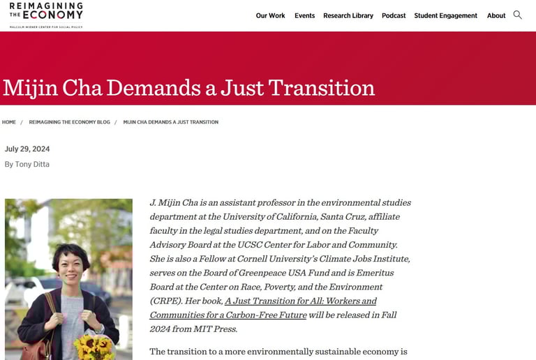 Mijin Cha Demands a Just Transition | ReImagining the Economy Harvard Kennedy School
